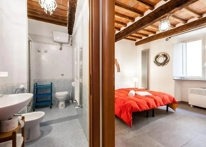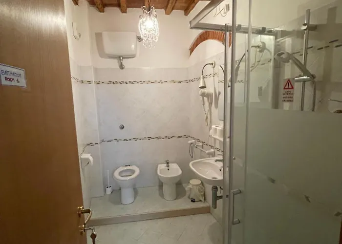 Per un piacevole soggiorno a Pisa, questo alloggio offre 6 camere complete di uno scrittoio e un impianto di climatizzazione. Includono anche un bidet, un bagno con WC separato e una doccia nei bagni.